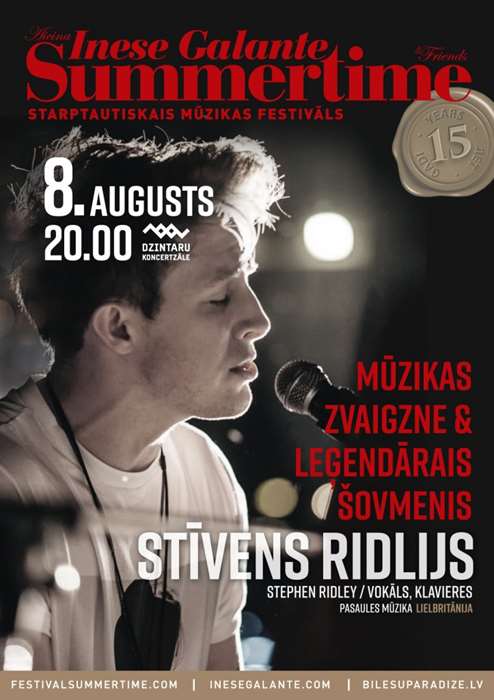 Выступление Стивена Ридли в концертном зале Дзинтари в рамках юбилейного фестиваля «Summertime — приглашает Инесса Галанте» с большой вероятностью станет самым эмоциональным сольным концертом в Юрмале. Экспрессивное и яркое шоу харизматичного шоумена из Великобритании Стивена Ридли подарит юрмальской публике незабываемые эмоции. Это не концерт в традиционном восприятии, а страстный «танец» вокала и игры на фортепиано как настоящий моно-спектакль талантливого актера.