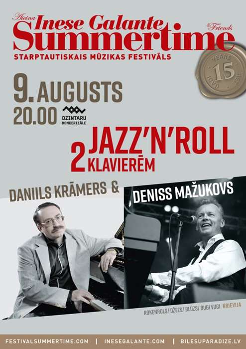 Даниил Крамер и Денис Мажуков приглашают всех ценителей искусной музыки на свой концерт «JAZZ’N'ROLL для двух роялей» 9 августа в концертном зале Дзинтари в рамках юбилейного международного фестиваля «Summertime — приглашает Инесса Галанте».